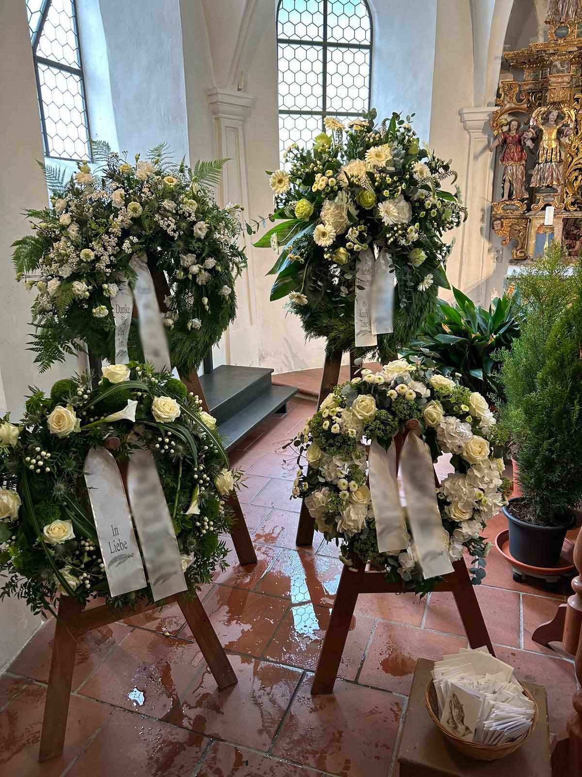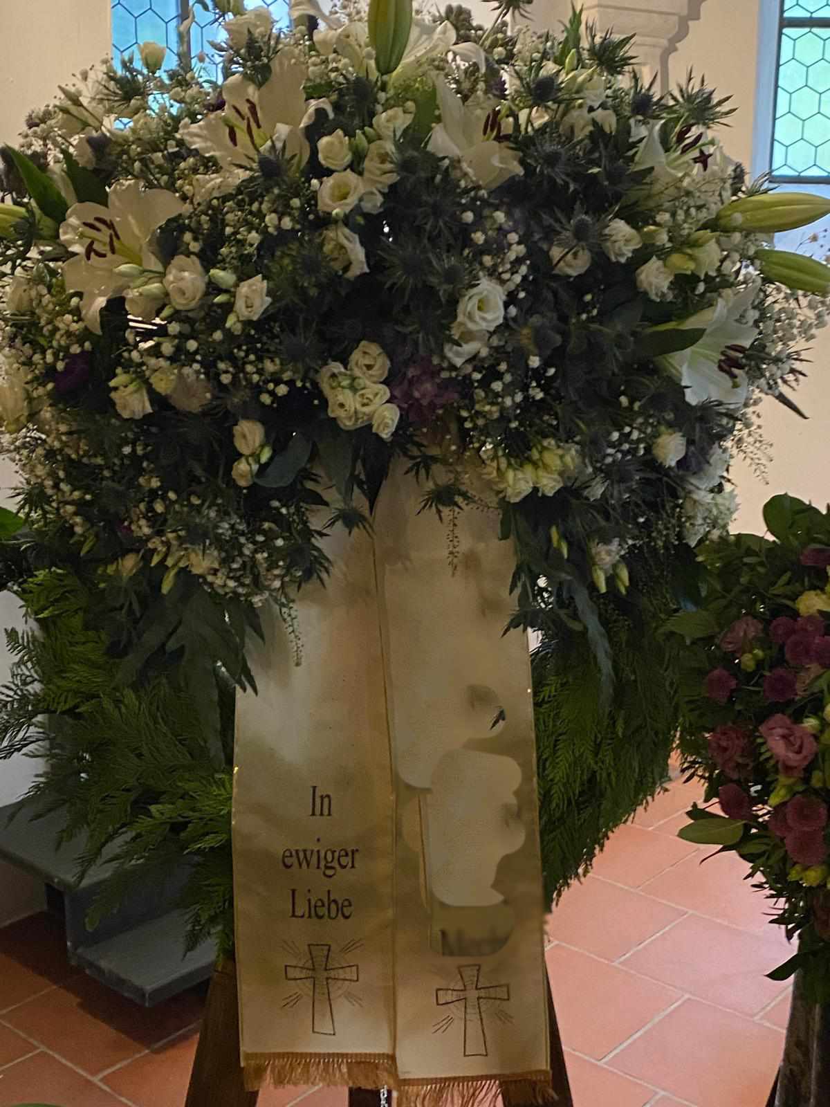 Ob für Aufbahrung, Kirche oder Grabstätte – wir beraten Sie behutsam und begleiten Sie auf diesem schweren Weg mit floralen Arrangements voller Würde und Erinnerung.