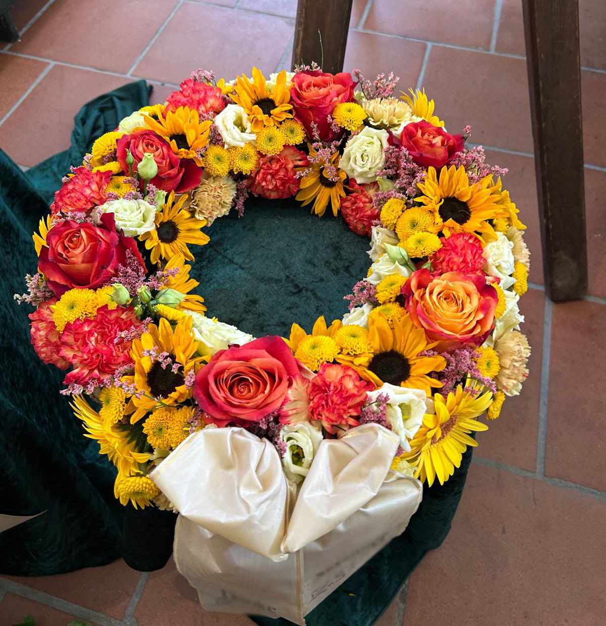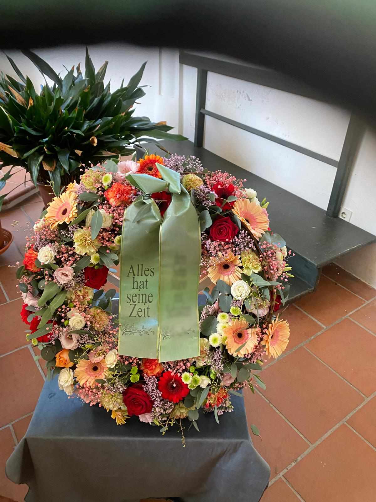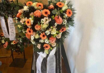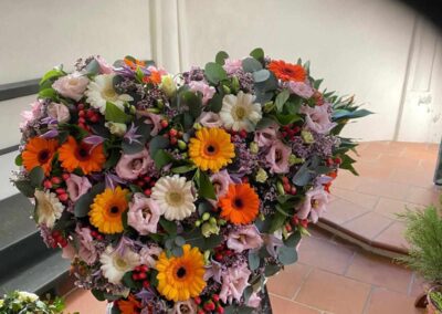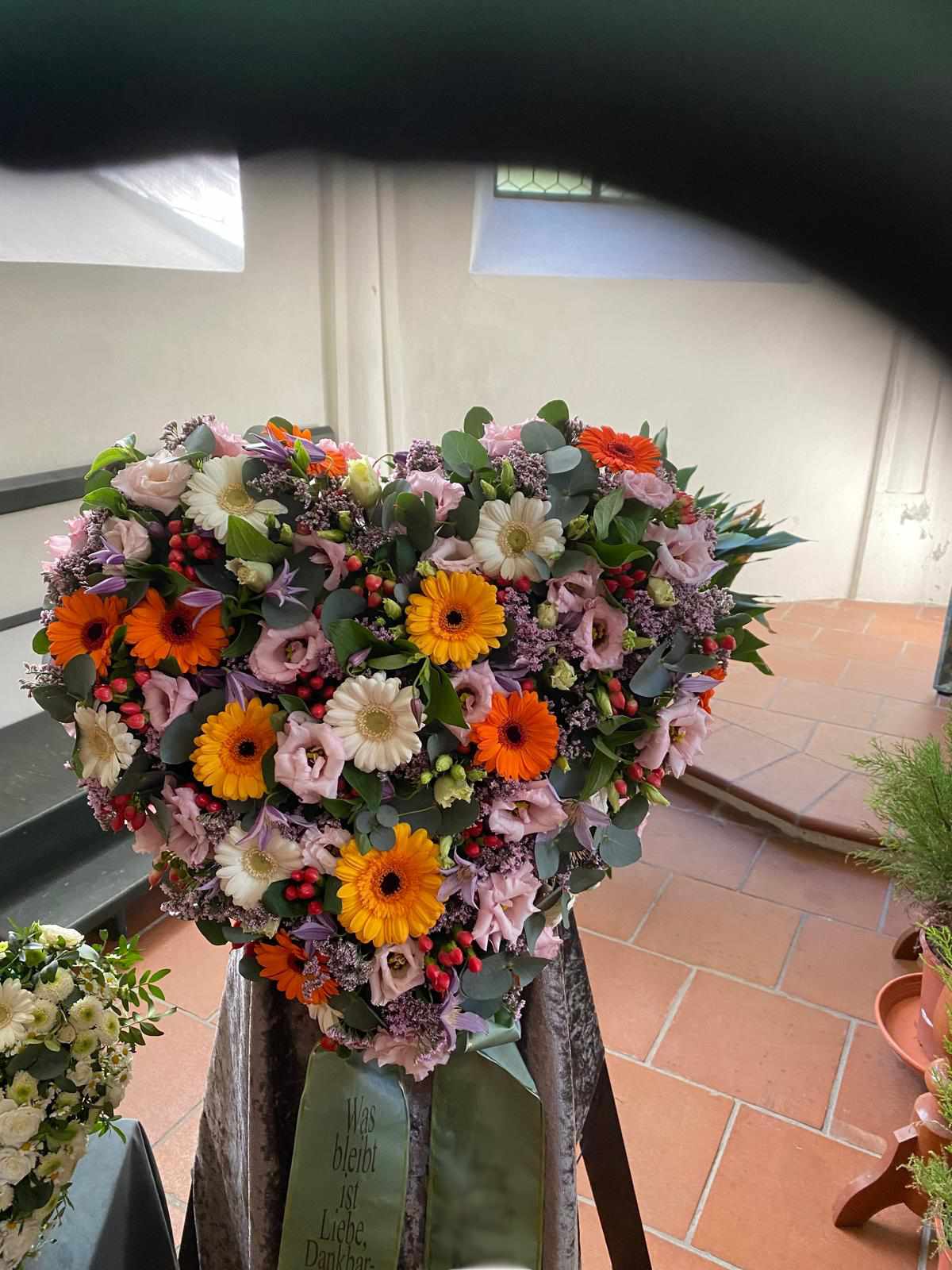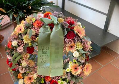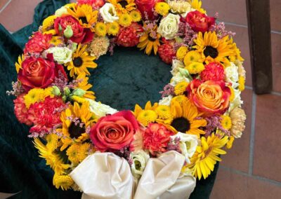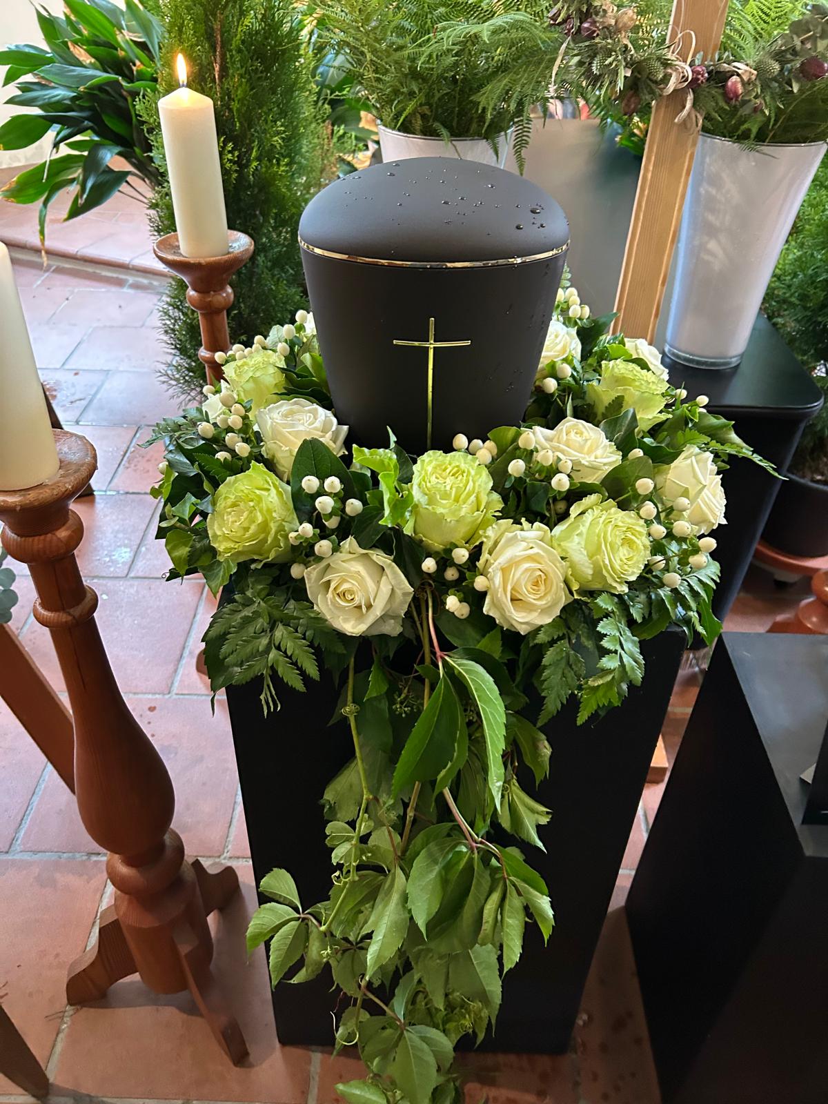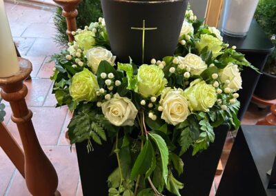 Mit unserer Trauerfloristik möchten wir Ihnen helfen, einen liebevollen und würdevollen Abschied zu gestalten. Wir fertigen individuelle Trauerkränze, Gestecke, Sarg- und Urnenschmuck mit viel Einfühlungsvermögen und Sorgfalt.